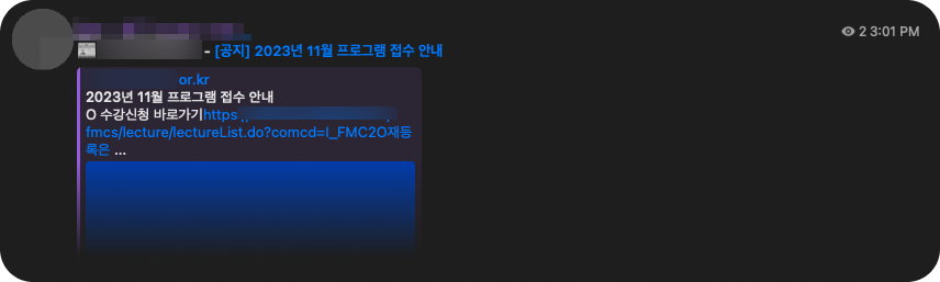 한번 등록 후에는 특정 기간마다 재수강 신청 안내에 관한 연락을 주지만 등록하기 전에는 본인이 직접 재수강 공고가 뜰 때까지 기다려야 하고, 언제쯤 올라오는지 대략적으로 파악해 계속 확인해야 하는 점이 불편했어요. (그 주기도 일정치 않더라고요.)