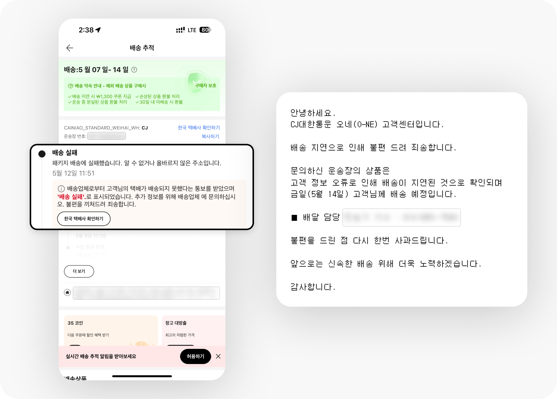 직구 특성상 배송이 오래 걸렸어요. 게다가 판매자의 배송지 오기입으로 배송이 더 지연되었습니다. 알리 익스프레스 앱의 "배송 실패" 알림을 보고 배송사에 연락, 주소를 수정하여 2일이나 더 늦게 받았습니다.